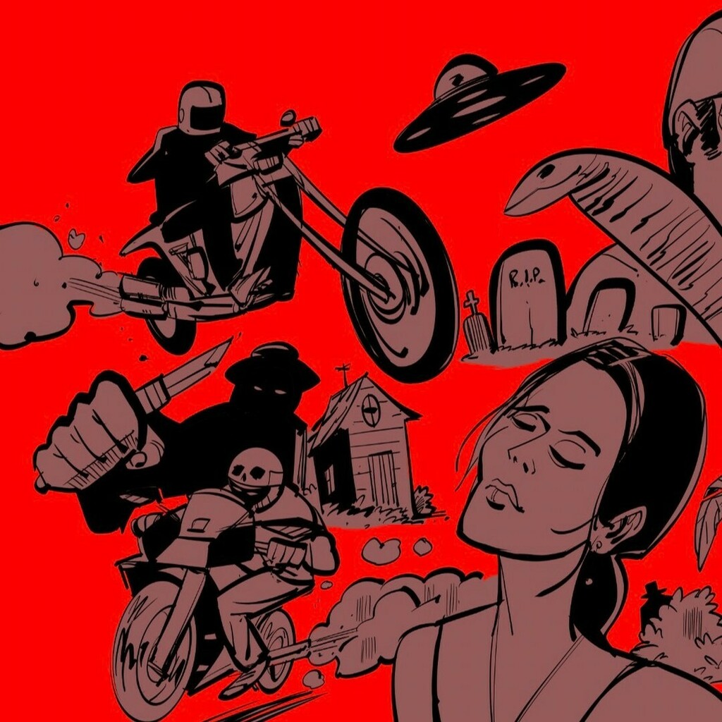 Sharing some #wip for a future topic I'm mulling on, with a focus on tricks and techniques to exaggerate from references. #illustration #montage #motorcycle #woman #dinosaur #UFO #lowbrowart instagr.am/p/Cd9HZvWO-b4/