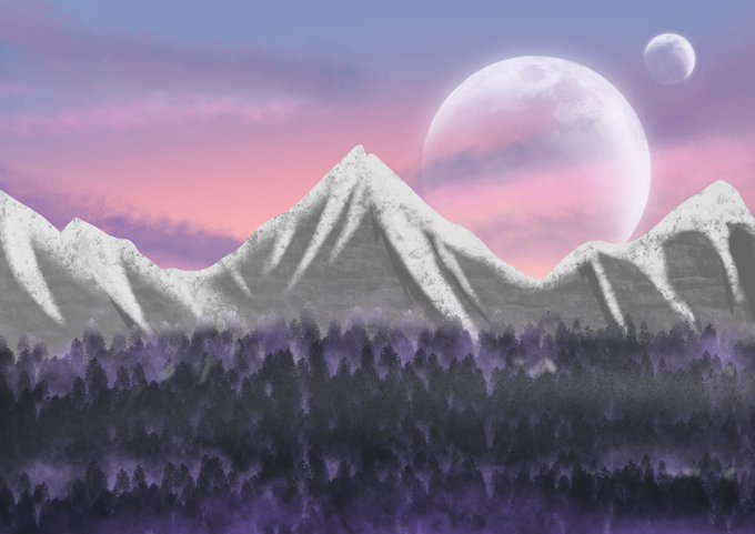 Been playing around with lots of things lately that will be revealed to all soon❤️❤️ #landscape #moutains #moon #moons #digital #digitalillustration #illustration #illustrator #art #artist #fantasy #fantasyworld #procreate