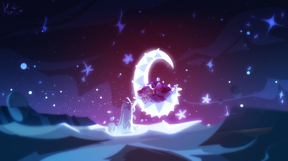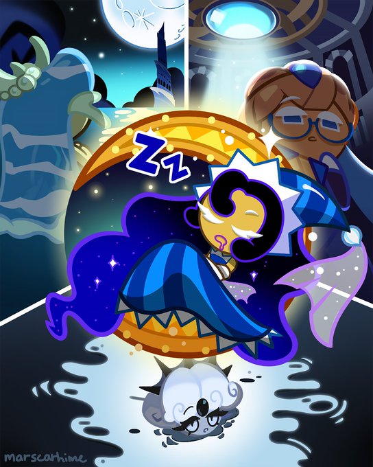 Doces sonhos são feitos disso~ 💤 Já conseguiu a Maga Lunar? 🤩 Fanart por: @Cookiet0 no Instagram! Nos marque para ser destacado🌙 #CookieRun #CookieRunKingdom #MoonlightCookie #CookieRunFanart