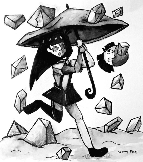 Day 17: collide Rain rocks! This one isn't really spooky, but how could I pass up an excuse to draw ENA! #inktober #inktober2021 #ENA #Enafanart #Moony
