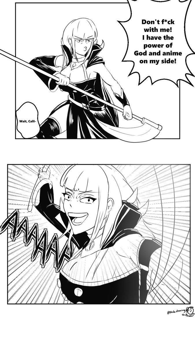 After seeing Calli with her scythe bass during her 3D showcase, I just had to draw her with it. #callillust #Mori3D