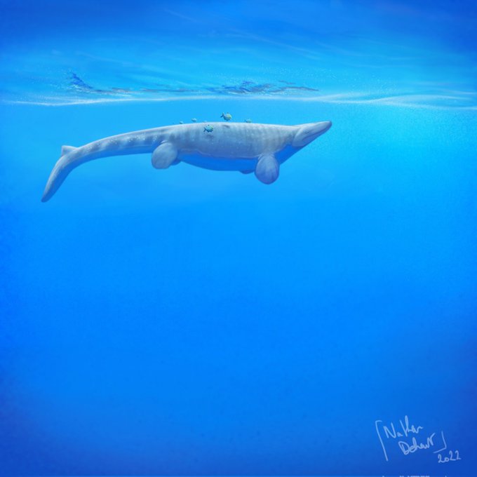 Drawing on a phone is limiting, but doable for me. Halisaurus arambourgi paleoart Criticisms welcomed, although with this one I focused more on learning perspective and lighting than accuracy for the most part, but still. #paleoart #mosasaur #paleontology