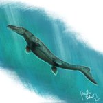 Portunatasaurus krambergeri pursuing fish in the waves during the late Cretaceous of what is now Croatia. This early mosasauroid shows a transitional morphology between terrestrial squamates and fully-aquatic mosasaurs. #paleoart #mosasaur #marinereptiles