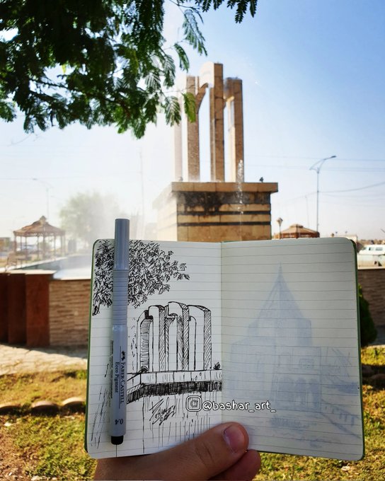 اثناء جلوسي واقتراب موعدي للدخول على الطبيب . when I sit down and approached my appointment to see the doctor. #fabercastell #mosul #iraq #Mosque #ArtistOnTwitter #art #drawings #drawingwhileblack #inktober2021 #painting @FaberCastell_BR @faber_castell