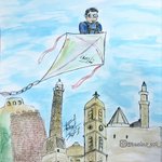 وكأنه يمثلني🚶♂️🪁 أعشق الموصل بكل جوامعها وكنائسها وبيوتها العتيقة الجميلة وطيب اخلاق أهلها وجمال دجلتها وبأسواقها العتيقة الرائعة ومواقعها التاريخية التراثية #الموصل #العراق #Mosul #Iraq #old_city #Revive_the_Spirit_of_Mosul #watercolor #inktober2021 #artwork #drawing #sketchart