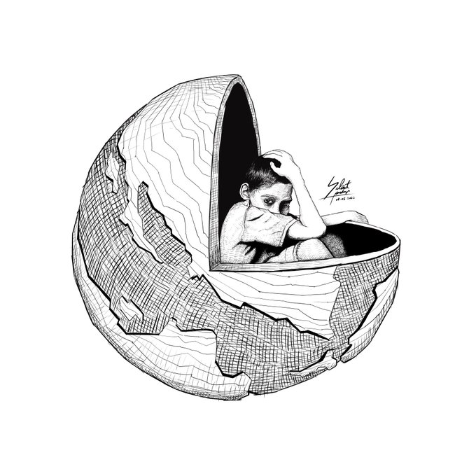 Inktober52 2022 Week 18 - World “Thank you for bringing me to this world, it is awful, but at least I got the chance to experience. Happy Mother’s Day.” @inktober #MothersDay #MothersDay2022 #inktober #inktober52 #inkart #illustrator #illustrationart