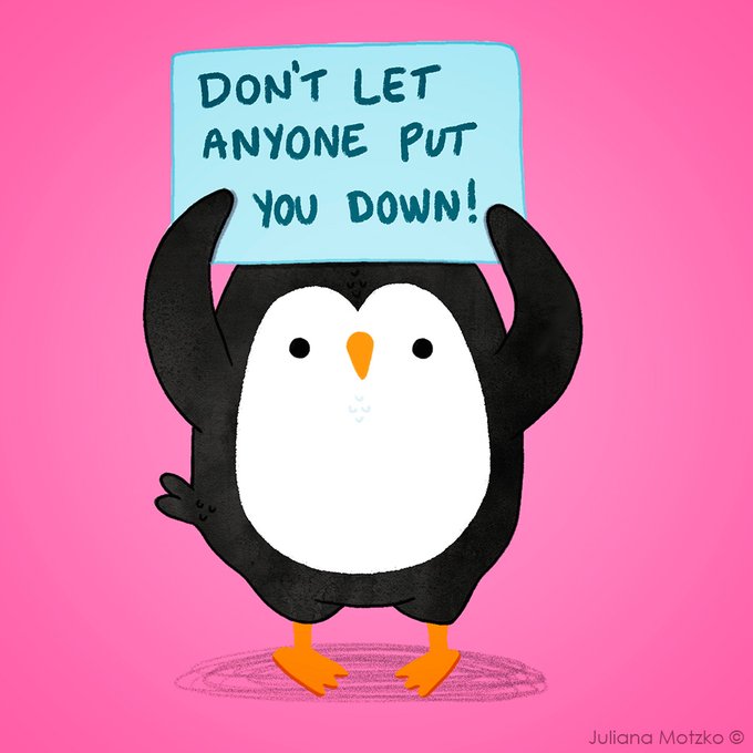 Don't let anyone put you down! #ThePenguinsFamily #penguin #motivational #cute #PenguinsLife #life #cartoon #dailylifecartoon #dailylife #illustrator #ilustracao #kidlitart #kidlitartist #插图师 #企鹅 #插画 #JulianaMotzko
