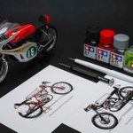 #タミヤ 1/12 RC166 完成しましたー! 実車資料を参考にほぼ全パーツをディテールアップ。 塗装、汚し、各部の配線などにこだわり本物に近づけました。 手のひらにホンダの伝説が蘇る〜! #MotoRacerコンペ #MotoRacerコンペ完成