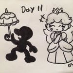 Day 11. Peach and Mr. Game & Watch. From Super Smash Bros Brawl (2008) Peach was a nice for Mr. Game & Watch with Peach’s Umbrella. How Sweet, 😊 #inktober #SuperSmashBros #peach #mrgameandwatch #supersmashbrosbrawl #drawing #sketch #inkpen #sketchbook #littlecartoon