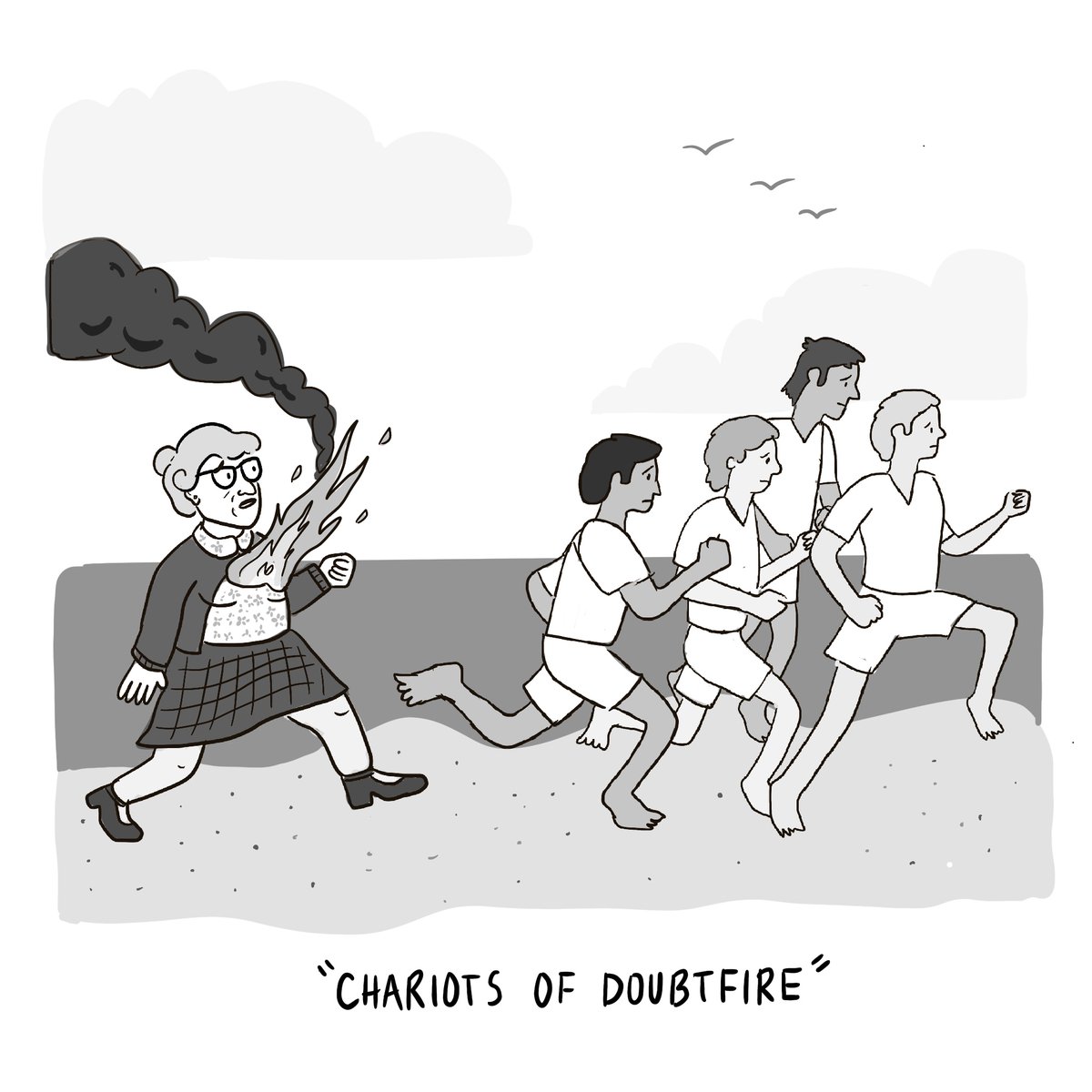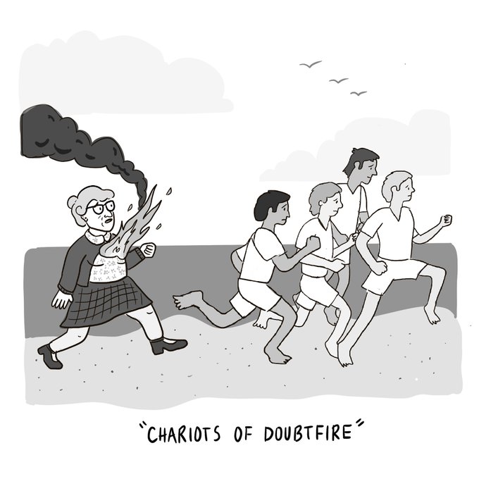 2022 Inktober Mashup No. 3 "Chariots of Doubtfire" It was a run-by fruiting! #inktober #MrsDoubtfire #ChariotsofFire