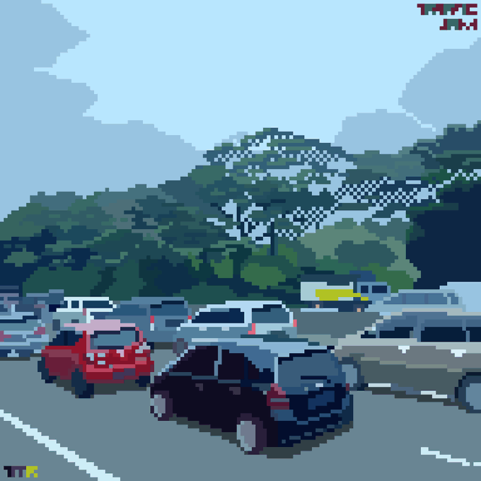 To Homeland: Traffic Jam Cikampek and Cilacap highway traffic when Lebaran Ramadhan come always been like this, get stuck for one two hours is like normal routine here. #pixelart #illustration #T_MR2 #イラスト #絵描きさんと繫がりたい #Mudik2022 #ドット絵