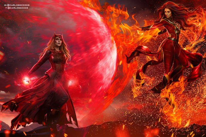 The SCARLET WITCH VS Dark Phoenix 🔥 ART by me Pls RT. It takes 1 sec of Your time. & this One took a while 😳🥵 #MultiverseOfMadness #ScarletWitch #DoctorStrange