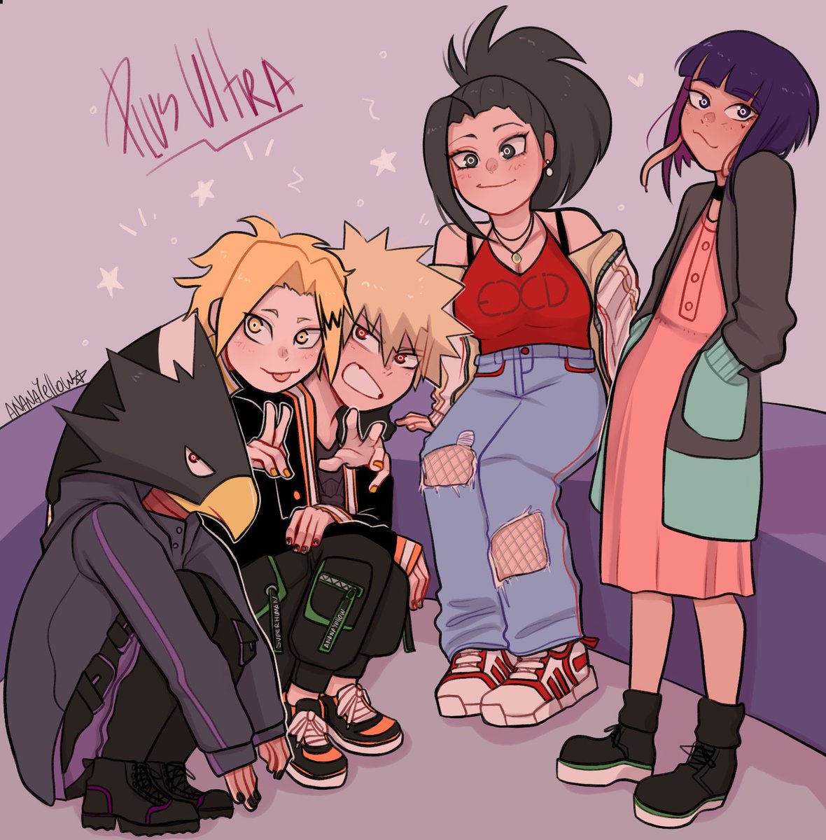 I'm back on my MHA bullshit for the end of 2021! (aka @Atsushi101X's #MyArtAcademia) This fanart from February actually helped me get out of my months-long depression spiral! From an "aged-up Bakusquad goes clubbing" drawing series I never finished. 🙃