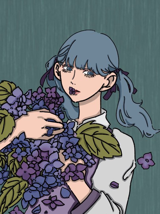 青かった夜明けが朝になってしまうようです #イラスト #illustration #picture #MyHairisBad #マイヘア #花びらの中に #紫陽花 #イラスト好きな人と繋がりたい #誰かの性癖にさされ #誰かの推し絵師になりたい