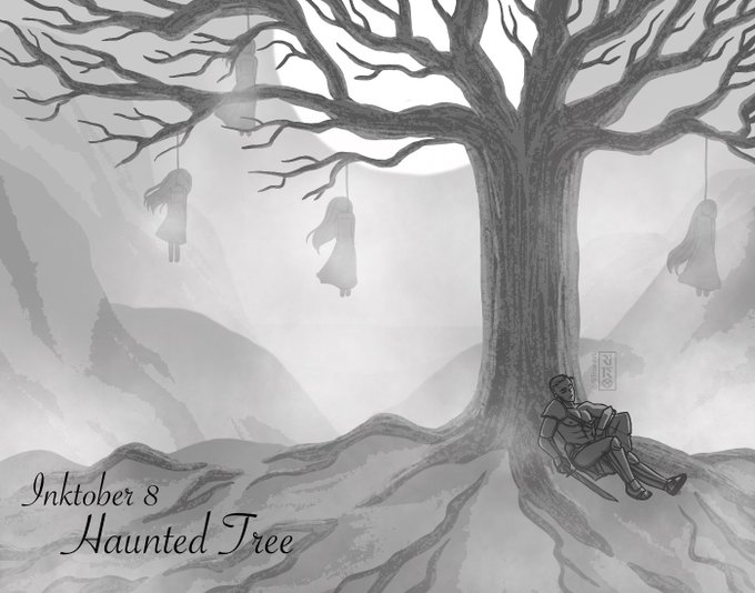 Here's Day 8: Haunted Tree for #myinktober Featuring Alyx and some subtle/unsubtle nods to his original RP arc before he ended up as WoL - Pls hold this #inktober2022 #ffxiv