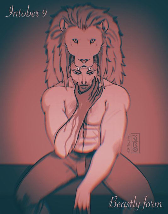 Inktober Day 9: Beastly form (tw: blood/ Chromatic aberration) OC Mane from: @Pay4yoursins1 #myinktober #inktober2022