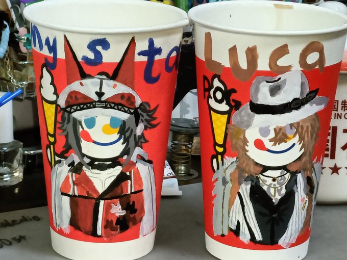 Mysta and luca on the milk tea cups(蜜雪冰城) artist:俞 #mystart #MystaWorldWide #MystaEmotes #MysThumb #drawluca #pognail