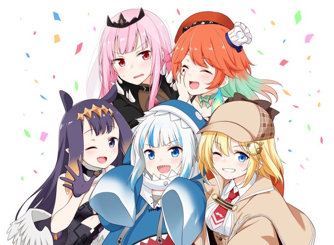 Thaaaankiiu for this wonderful year! 🦈🐙💀🐶🐔 #Mythiversary #callillust #inART #ameliaRT #artsofashes #gawrt
