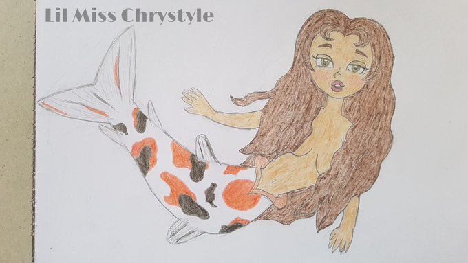 Kordelia (11/10/2021) My new mermaid OC based on the Koi fish. #traditionalart #originalcharacter #OC #art #drawing #blacktober #Inktober #Mermaid #mythology #mythologymonday