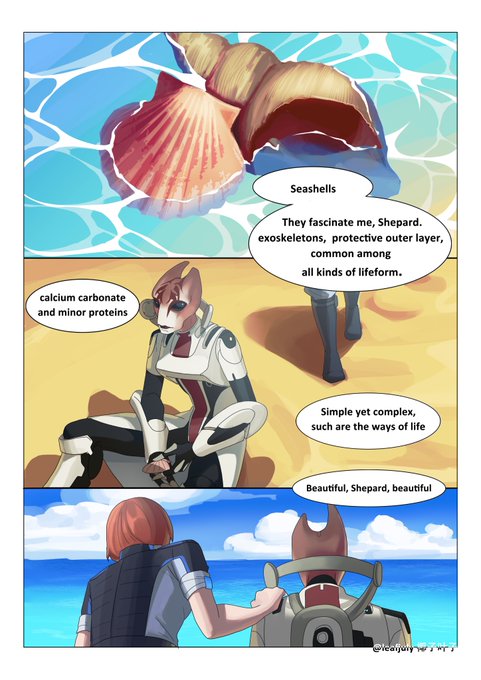 Here's a surprise for #N7day that I worked very-very hard on in order to make it in time. Commissioned as always by the wonderful @swaps55 as the latest entry in our ME1 destinations series, it features beachy vibes and crabby crimes on sunny Virmire 🏝♥️ #masseffect #n7day2022