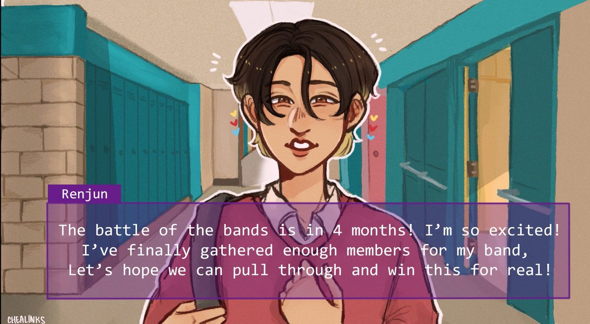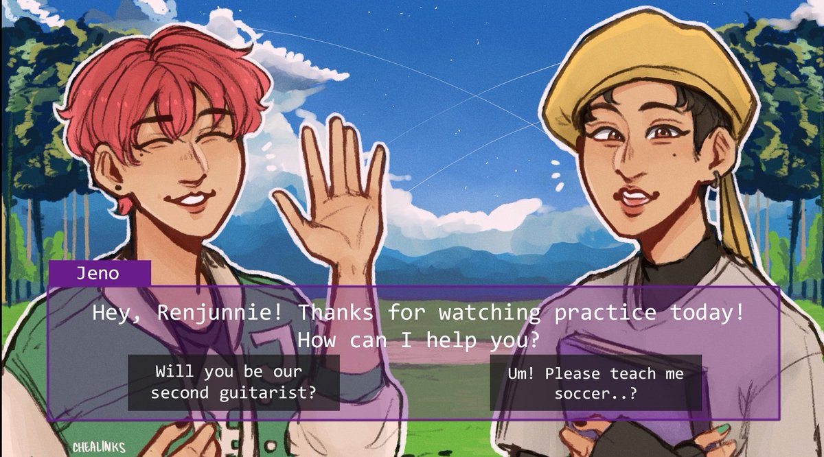 (Visual Novel Parody) Play as college senior Huang Renjun and gather other members to form a band in order to compete in the SMU battle of the bands!❤ (1/3) #NCTDREAM_GlitchMode