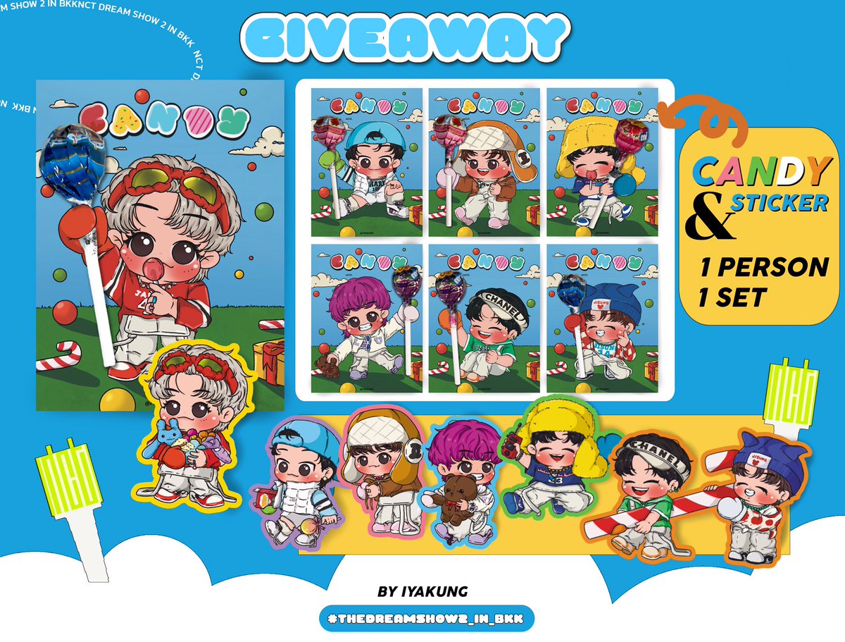⋆- giveaway -⋆ น้องดรีมมาแจกลูกอม 🍭 dream candy 🍭 sticker die-cut random member 1 person/set date 10 & 12 mar 2023 Impact arena ทีมน้ำตาลตกรายงานตัวค่า 🙋🏻♀️ วันละ 50+ เซ็ทนะคะ จำนวนไม่แน่นอน ความผกผันอยู่ที่พ้มเอง ว่าจะกินก่อนถึงวันไปกี่อัน #NCTDREAM_THEDREAMSHOW2_in_BKK