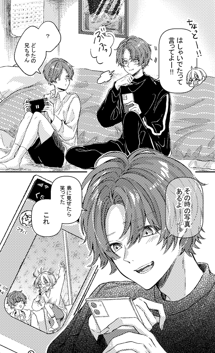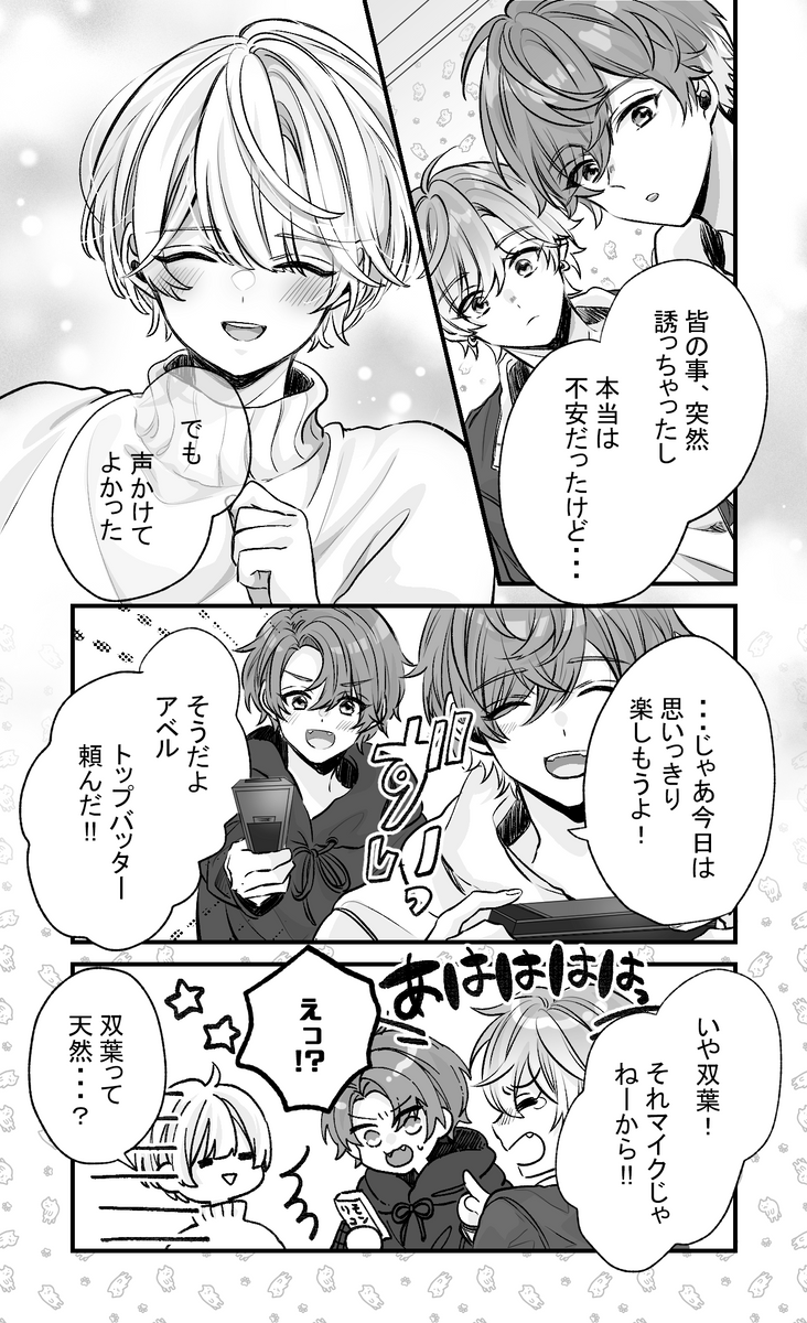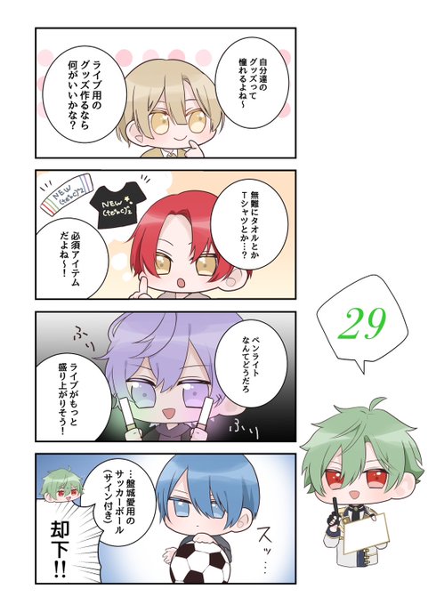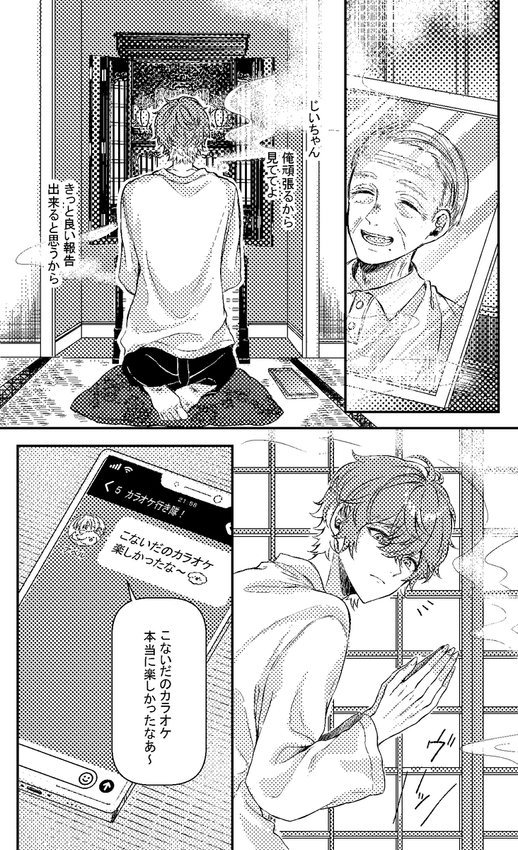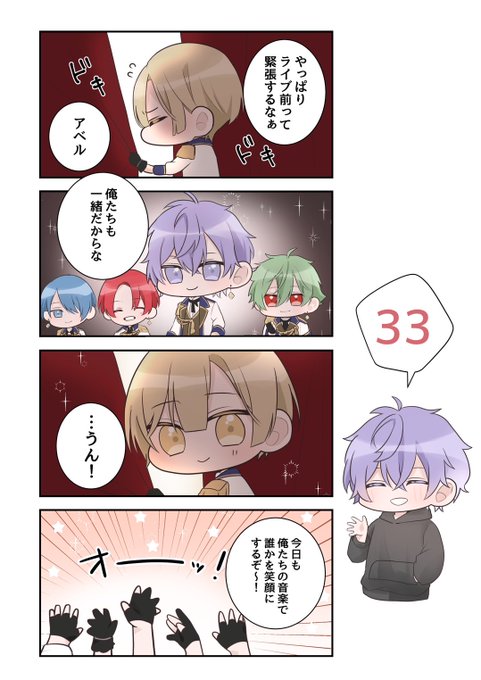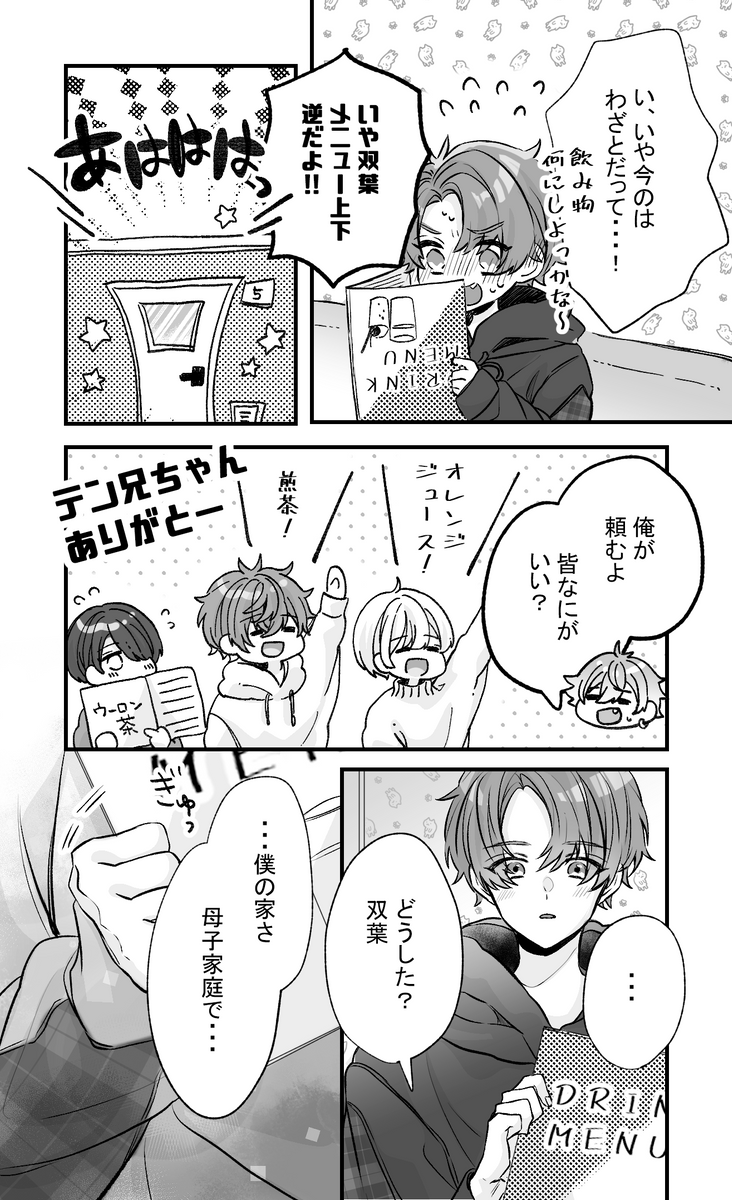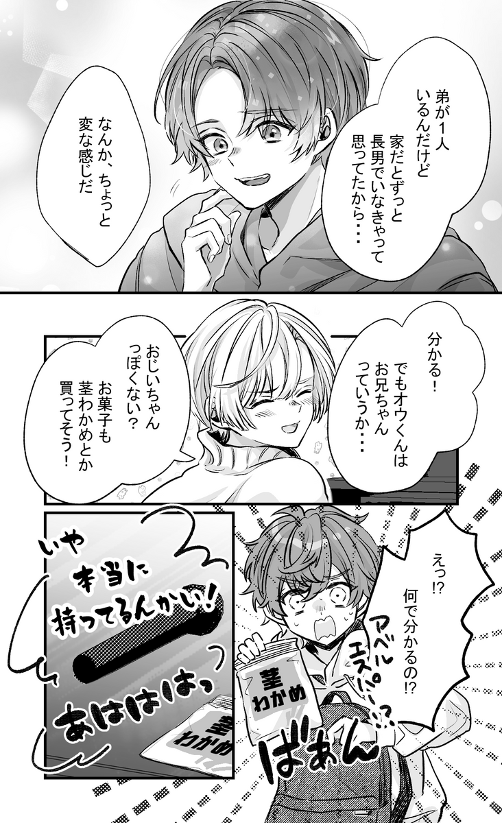 アイドルグループ「NEW (te"nC)^2」の頼れるお兄ちゃん"押鐘 凰起" おじいちゃんっ子の彼が持ってくる差し入れは…… マンガ:萩原あろ( @Aro_Hagiwara ) #HOWLing4コマ #漫画が読めるハッシュタグ #音楽で恩返し #NEWtenC2