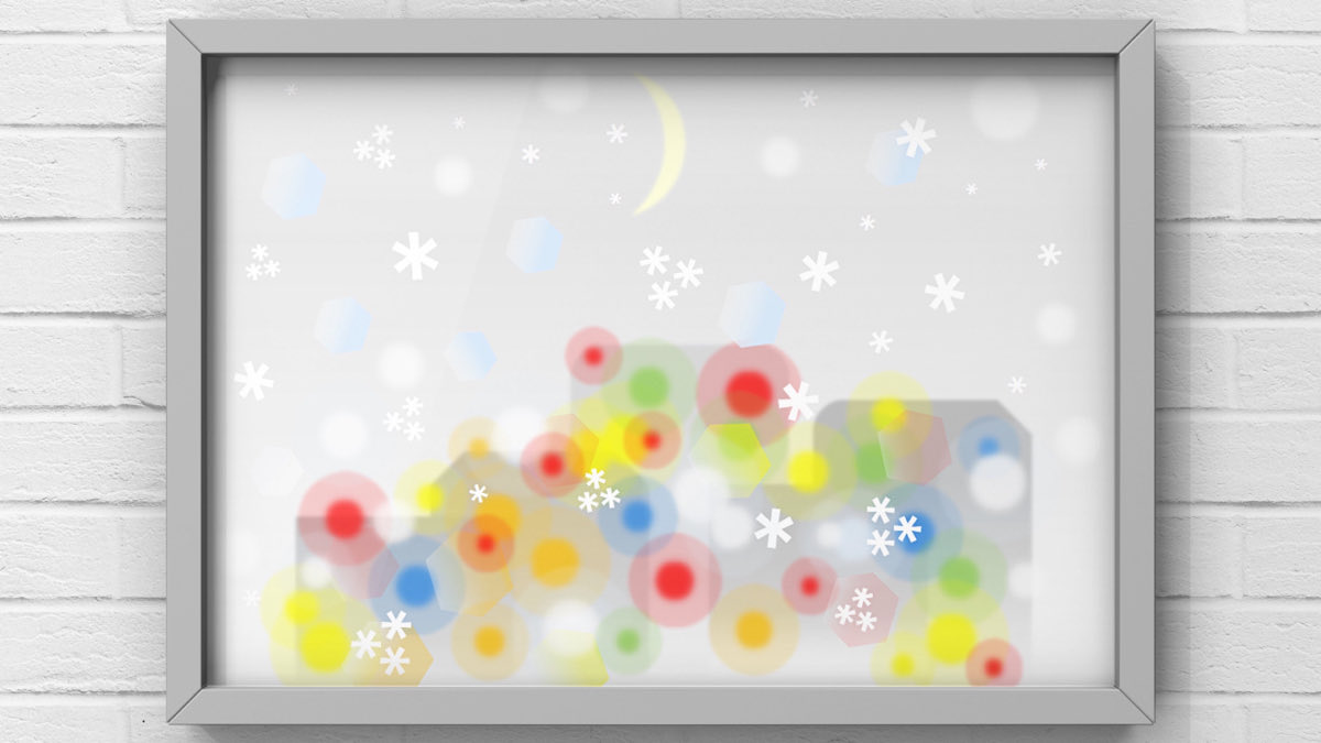 冬祭り —遠くの街から— 【#Under_the_Moon 57】 朧月夜の空から、白い雪が降ってくる。 遠くの街から、淡く祝祭のイルミネーションが届く。 しんしんと冷えた景色の中から、心にそっと灯るような温かさ。 #NFTアーティスト #NFTアート #イラスト #NFTコレクション