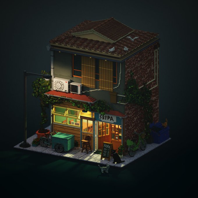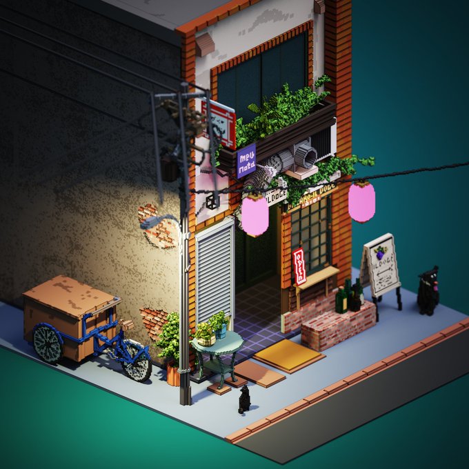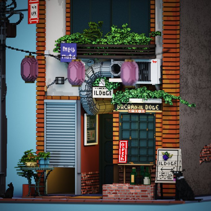 GN frens 🖖🌛🍀🤍🖤 Little Shops Collection No:08 Cafe Bar IL Doge is from Japan #voxel #voxelart #voxelartwork #voxelartist #magicavoxelart #nft #nftartist #nftart #magicavoxel #magicavoxelart #NFTCommunity #NFTcollection #nftcollectors #lowpoly #3dart #3d #cgi