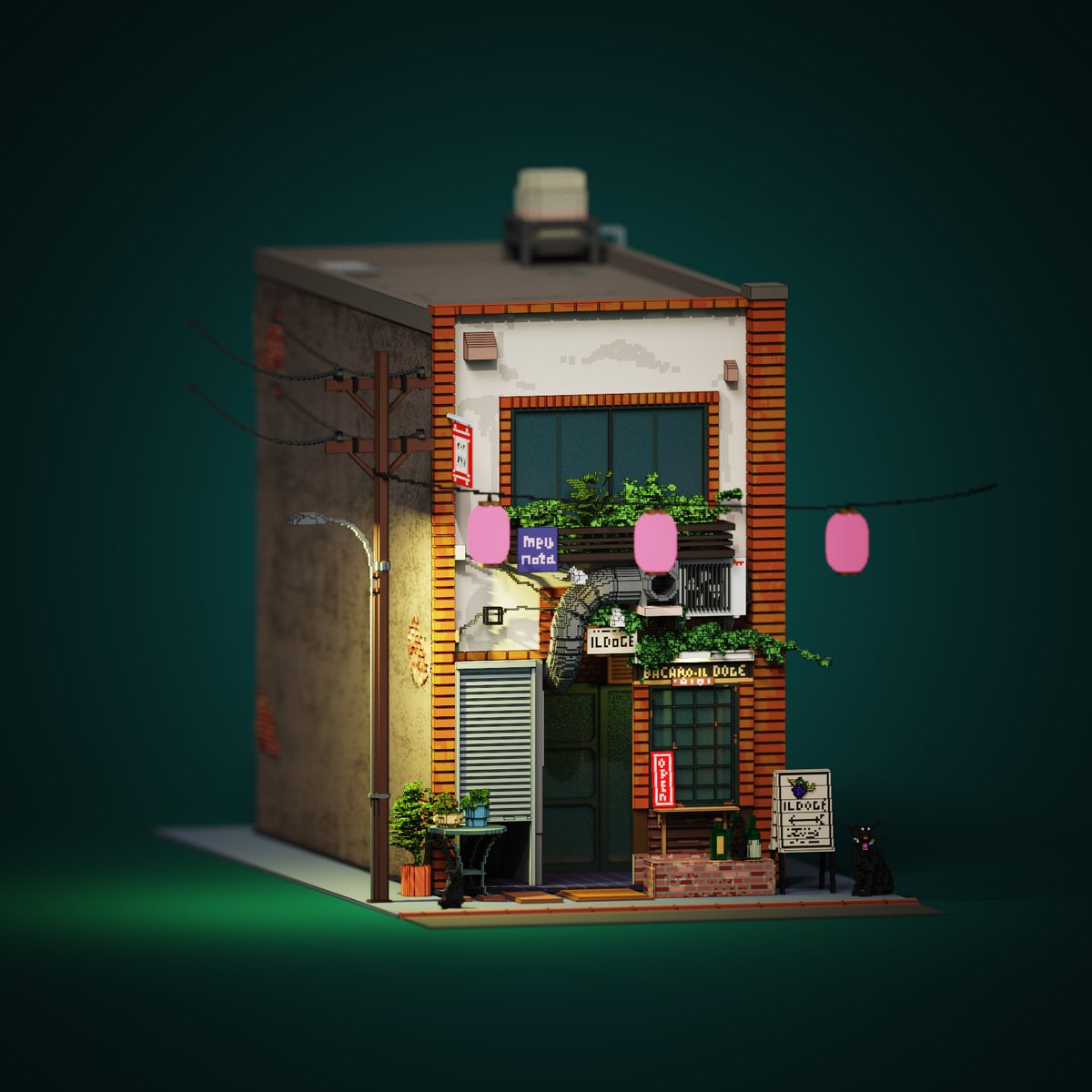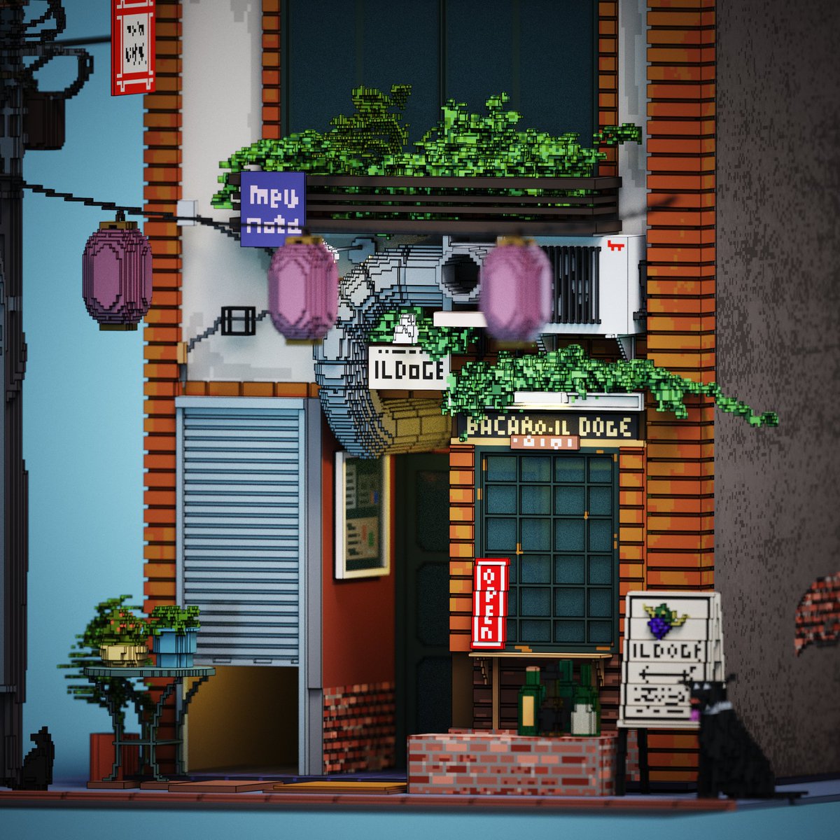 Little Shops Collection No:08 Cafe Bar IL Doge is from japan #voxel #voxelart #voxelartwork #voxelartist #magicavoxelart #nft #nftartist #nftart #magicavoxel #magicavoxelart #NFTCommunity #NFTcollection #nftcollectors #lowpoly #3dart #3d #cgi