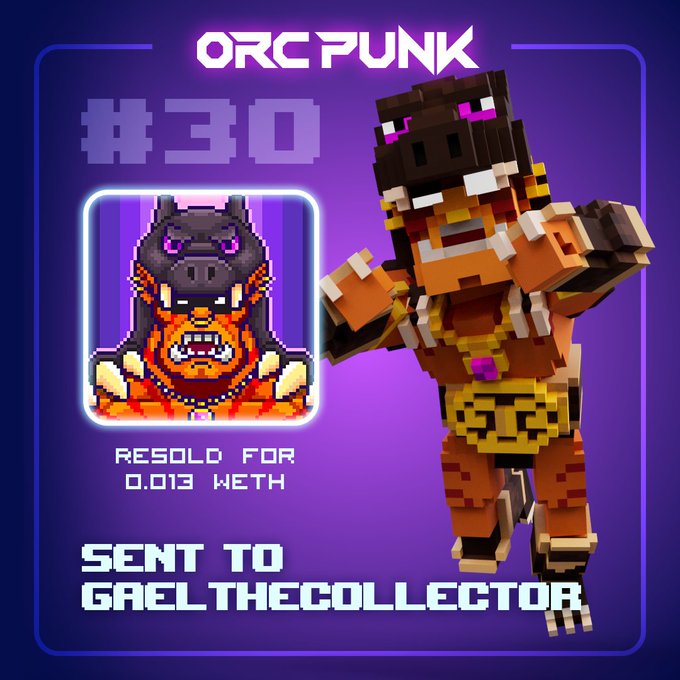 A total of 0.639WETH sales were generated by the Orc Punk VX event. We thank everyone who participated in the event! There will be more events to be announced in the future! #orcpunk #nft #nftcommunity #pixel #voxelart #opensea #sandbox #nftindonesia