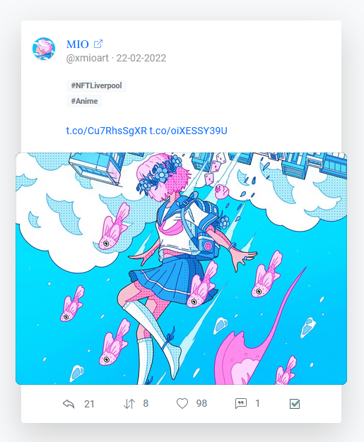 Just got the green tick on "Blue Divergence"!! Thanks so much to the curator who stumbled across my submission 💙🙏 LFG to #NFTLiverpool :catvibrate: