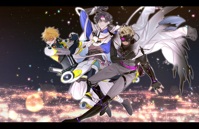 Happy 1 month Krisis!!💙💜💛 強くてかっこいいHERO達‼️ これからも応援してます✊🏻 ̖́- ( 3人だからぱふゅ~むポーズ ) #NIJIKrisis #zalillust #Vantalism #YouDrawWilson