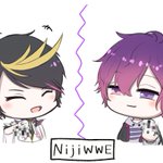 I had to draw the pre fight interview between Shu and Uki for WWE. It made me laugh so much! I love Niji Purple Wars. It's my first Niji fanart, but I hope you guys still like it! #VioletAtelier #YaminoArt #Shuuki #NIJIWWE #Shuuki Read Right to Left. Do not repost!