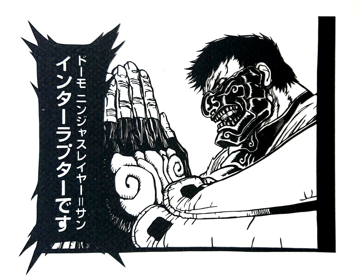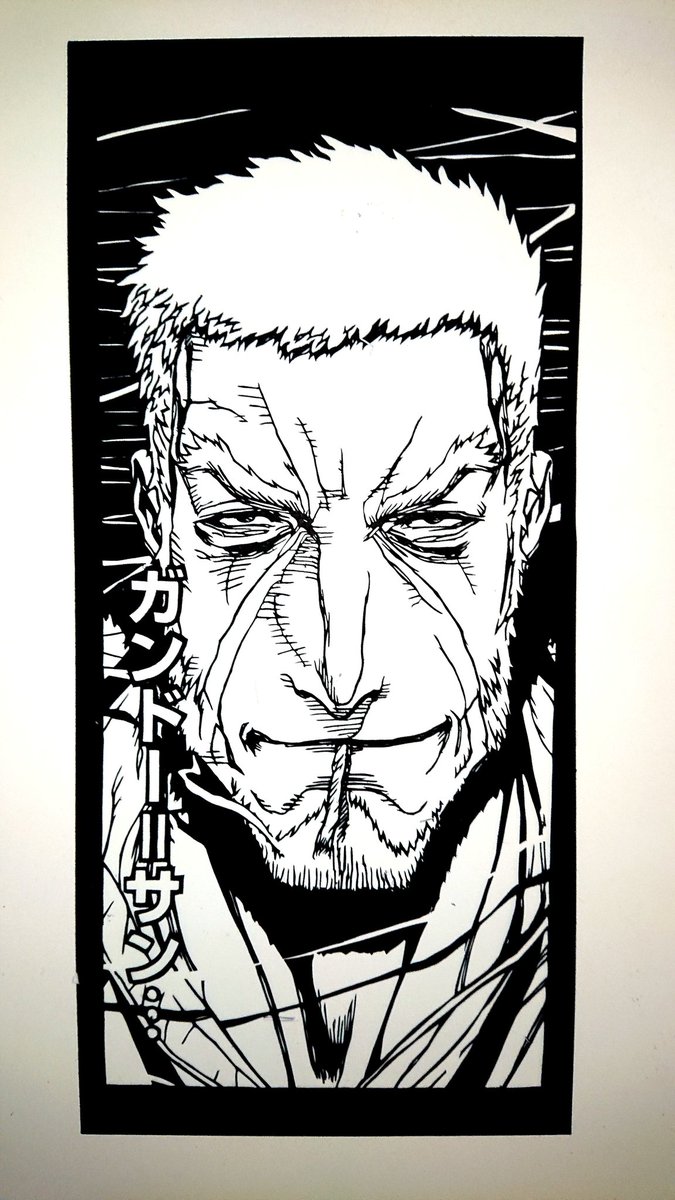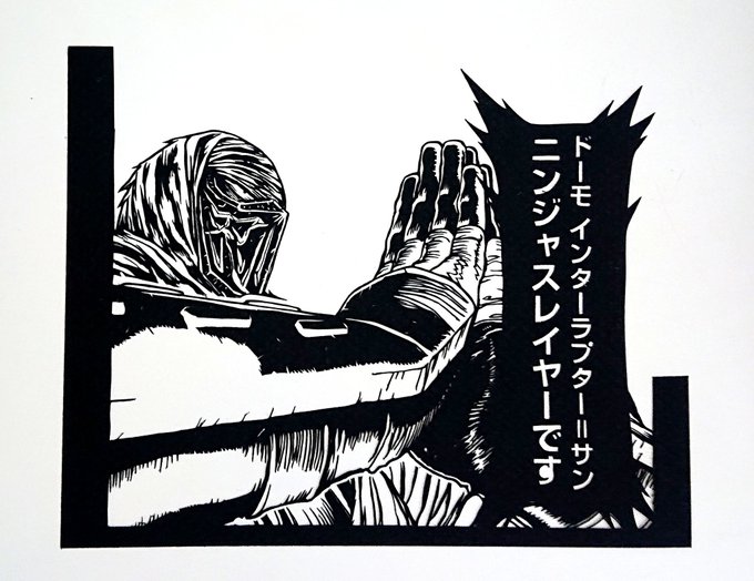 いまさらだけど忍殺ファンアート。 カクタス=サンって良いなあ。 何らかのショドー作業中にニンジャスレイヤーに闖入され、怒鳴りつけられた挙句に惨たらしくぶちころされるという不憫さがたまらぬ。 #ニンジャスレイヤー #ウキヨエ #NJSLYR