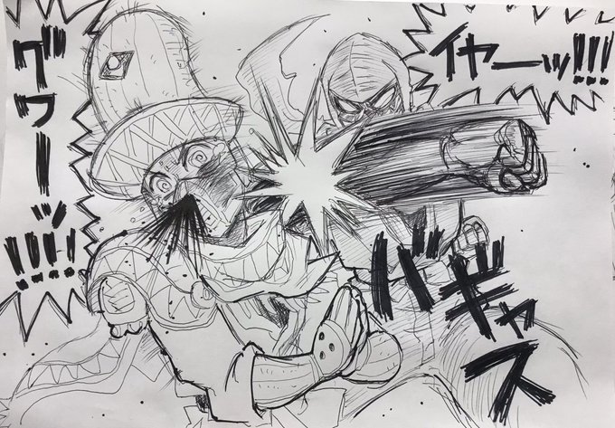 おやまあ、気づけば150イイネ! アリガトゴザイマス…みんなカクタス=サン好きなのか!? 嬉しいので続き描きましたwww …ニンジャスレイヤー=サン描くの初めてかもしんないww #ニンジャスレイヤー #ウキヨエ #NJSLYR twitter.com/ryuhi_misaki/s…