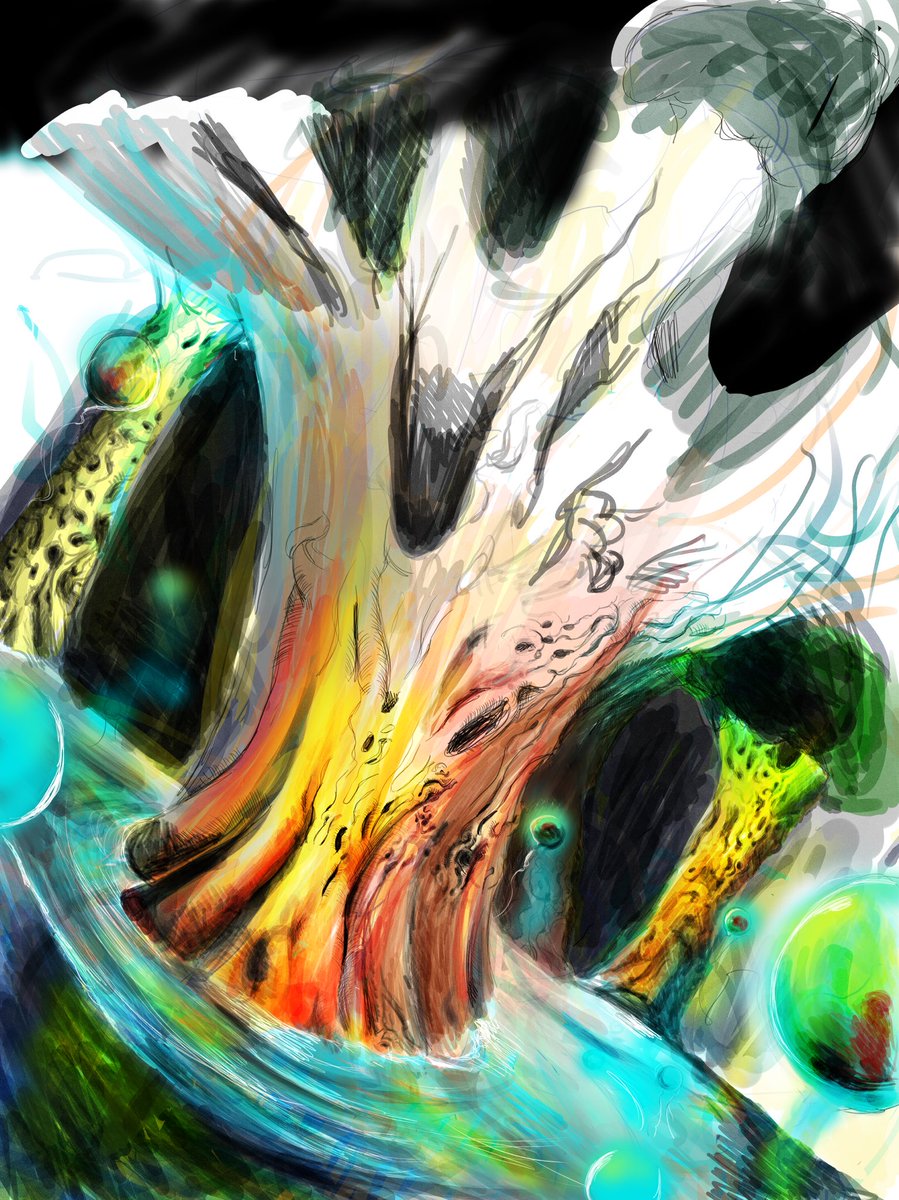 NOAHの森。あらゆる生命の生まれる場所です。色彩による強い生命感を意識。蛍光色を使うのは好きです。 #絵描きさんと繋がりたい #イラスト #イラスト好きな人と繋がりたい #SKYSTORY #NOAHの森 #NOAHの湖 #art #artistsontwitter #digitalart #DigitalArtist
