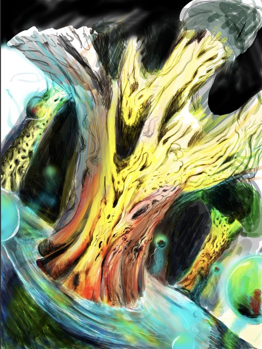 今回、小石のような男さん主催のSKYSTORYのコンセプトアートを描かせていただきました! 想像膨らむ世界観だったので楽しく描けました! 薄暗い森と壮大な木のある世界を創れたと思っております #コンセプトアート #絵描きさんと繋がたい #SKYSTORY #NOAHの湖 #procreate