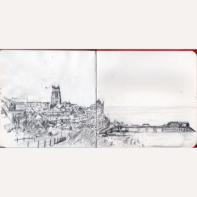 Little red sketchbook drawing - we went to #Cromer #sketchbook #sketch #dailydrawing #Norfolk #coast #ArtistOnTwitter #thedailysketch