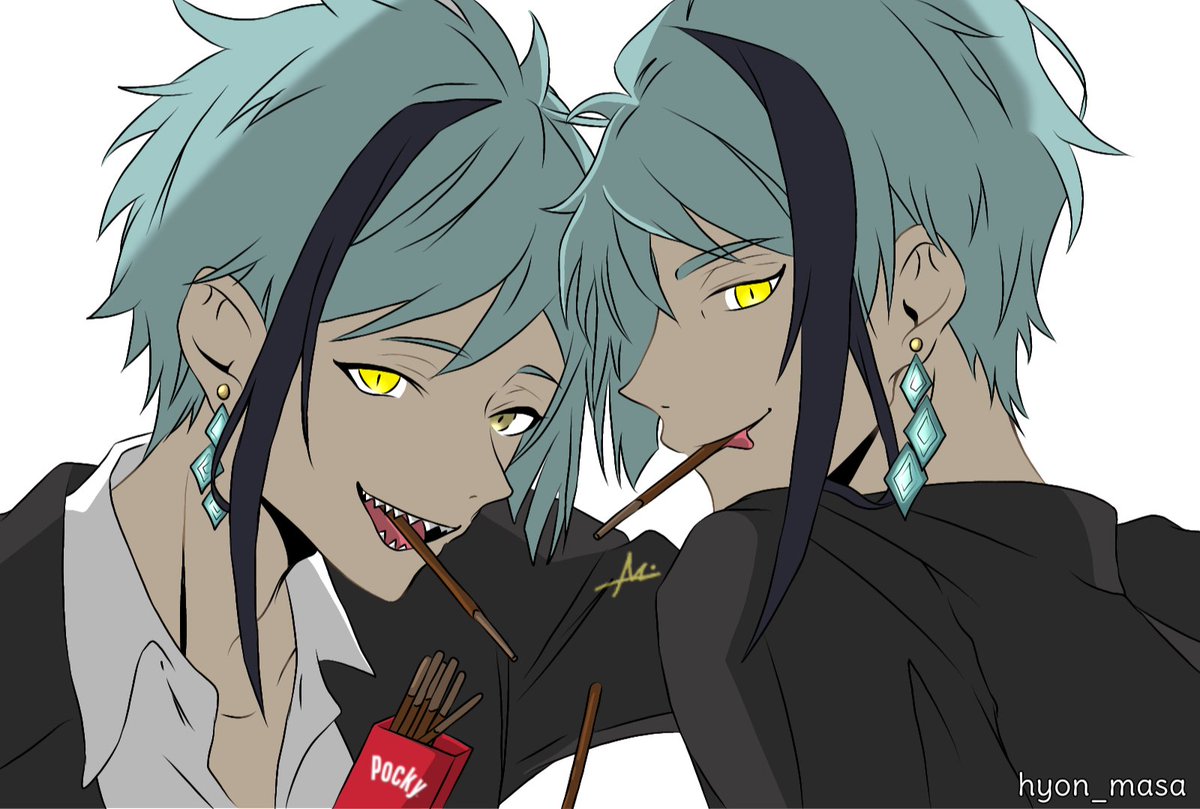 Its #Pockyday time Jade and Floyd ... ( /// -- /// ) #ツイステ #ツイステッドワンダーランド #twstプラス #twistedwonderland #twistedwonderlandart #twistedwonderlandfanart #twstファンアート #twistedwonderlandoc #nrc #octavinelle #jadeleech #floydleech #flotsam #フロイドリーチ