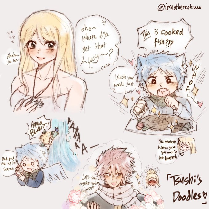 ftober day 9: favorite couple (+ their kid) been wanting to draw Nashi :] [#natsudragneel #lucyheartfilia #fairytail #nalu #nashi #hiromashima #fanart #inktober #inktober2022]
