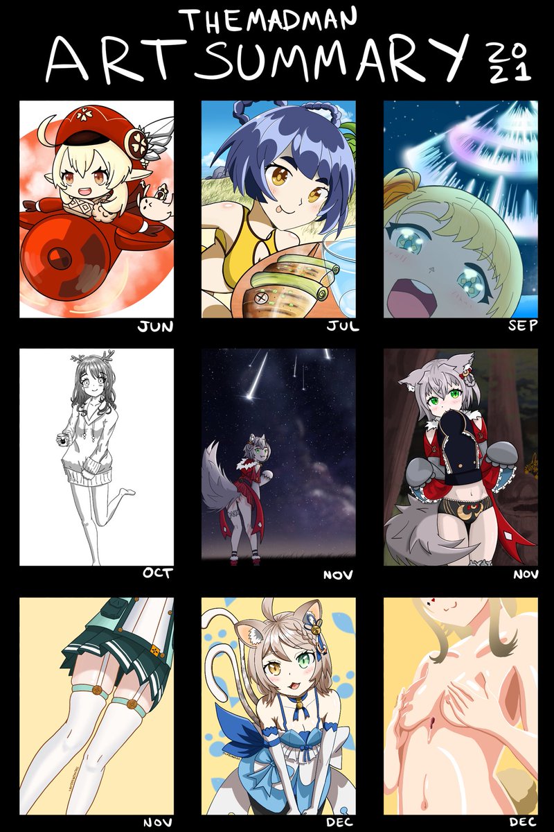 I started drawing in June and some months I drew WAY more than others so I sort of just picked the pieces I liked for this summary. #ArtSummary2021 #2021年の絵を振り返る #GenshinImpactFanart #PinaPix #FineFaunArt #NakiPaint #ArtofNia #NonArtNon
