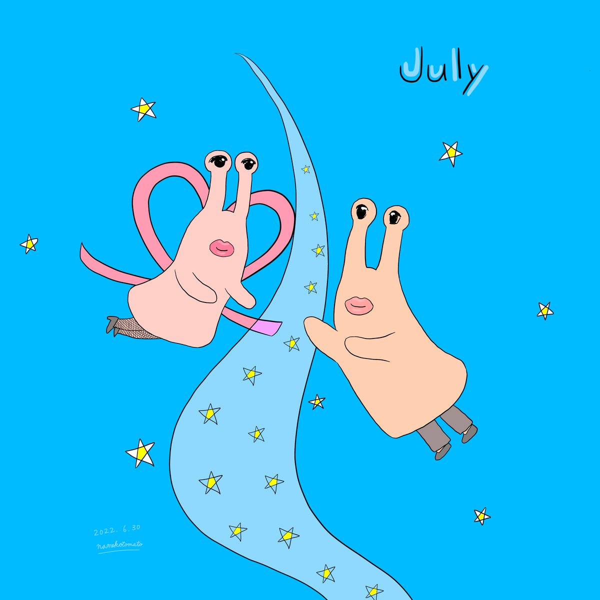 今日から7月です! もうすぐ七夕ですね。 July starts today! It will soon be Tanabata. #なめっこ星人 #ラブミー #イラスト #イラスト好きな人と繋がりたい #絵描きさんと繋がりたい #Namekkoseijin #Loveme #illustration