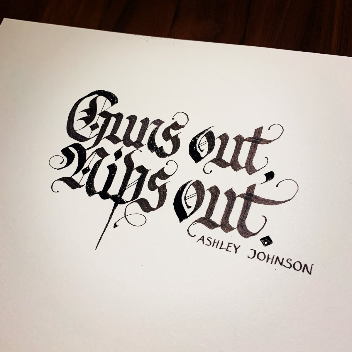 If you watched the latest #NarrativeTelephone from @CriticalRole this makes more sense. Not a LOT more sense, but more sense. @TheVulcanSalute @robbiedaymond #calligraphy #CriticalRole #CriticalRoleFanArt #GunsOutNipsOut