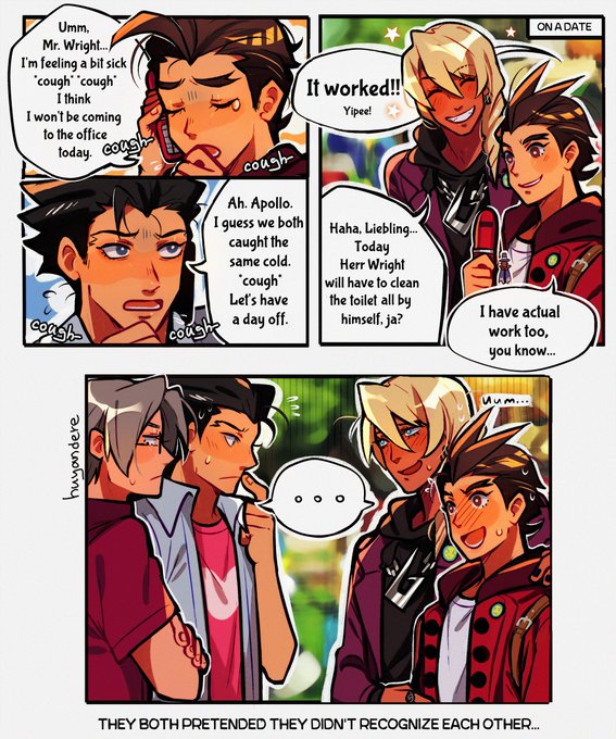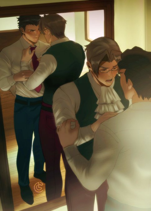 [ no dl6 au ] while miles studies law in LA, phoenix studies art in germany however, no matter the distance, they will always be connected #aceattorney #narumitsu #wrightworth #digitalart