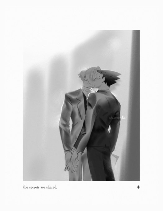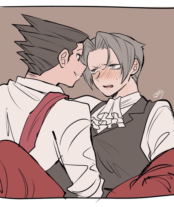 [落書き/逆転裁判/ナルミツ] 頑張りました…😭 三年前描けできなかった捨てラフ 今描けようになった🥹 脳内100%のイメージのままは無理だけど… たぶんイケるかな…!(デザインセンスほぼ0哀れなオタク) #成御 #narumitsu
