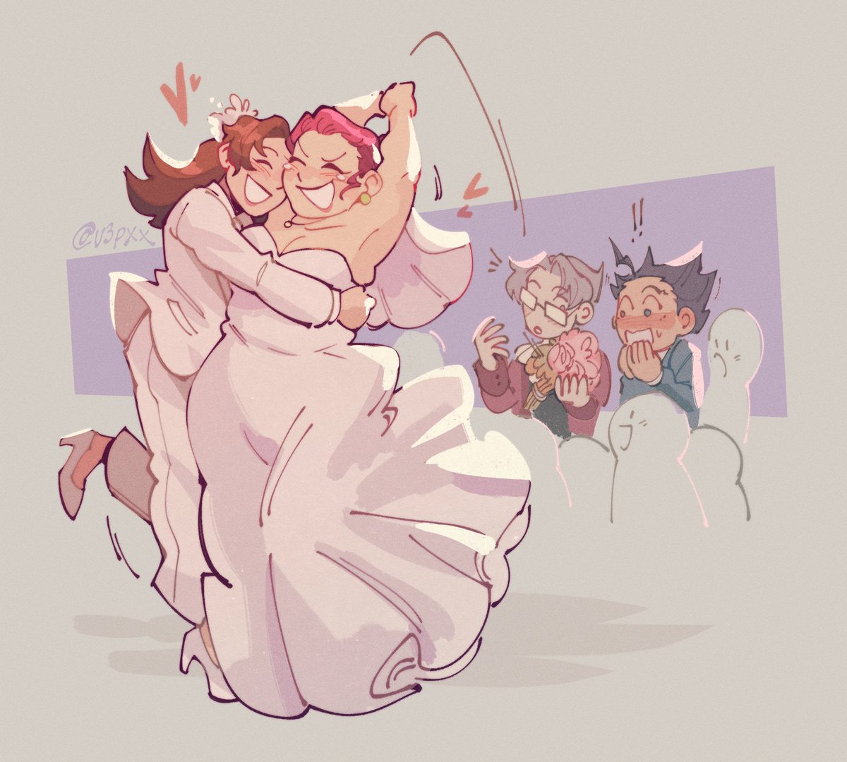 [#aceattorney #hanamusa #narumitsu] drew these for a poll on tumbly a while back! with everyone fighting for which ship should win the "gayest noncanon bitches" title, what i don't think a lot of people knew was... they were at each other's weddings!