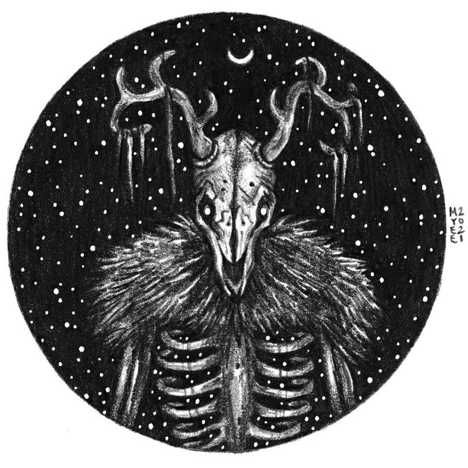@folktaleweek Prompt 4 : Feast 🦴 • Today’s illustration features the Wendigo, a being from Native American folklore. • #art #illustration #graphite #pencil #gelpen #wendigo #nativeamerican #folklore #monster #cannibal #horror #deerskull #cryptid #folktaleweek #folktaleweek2021