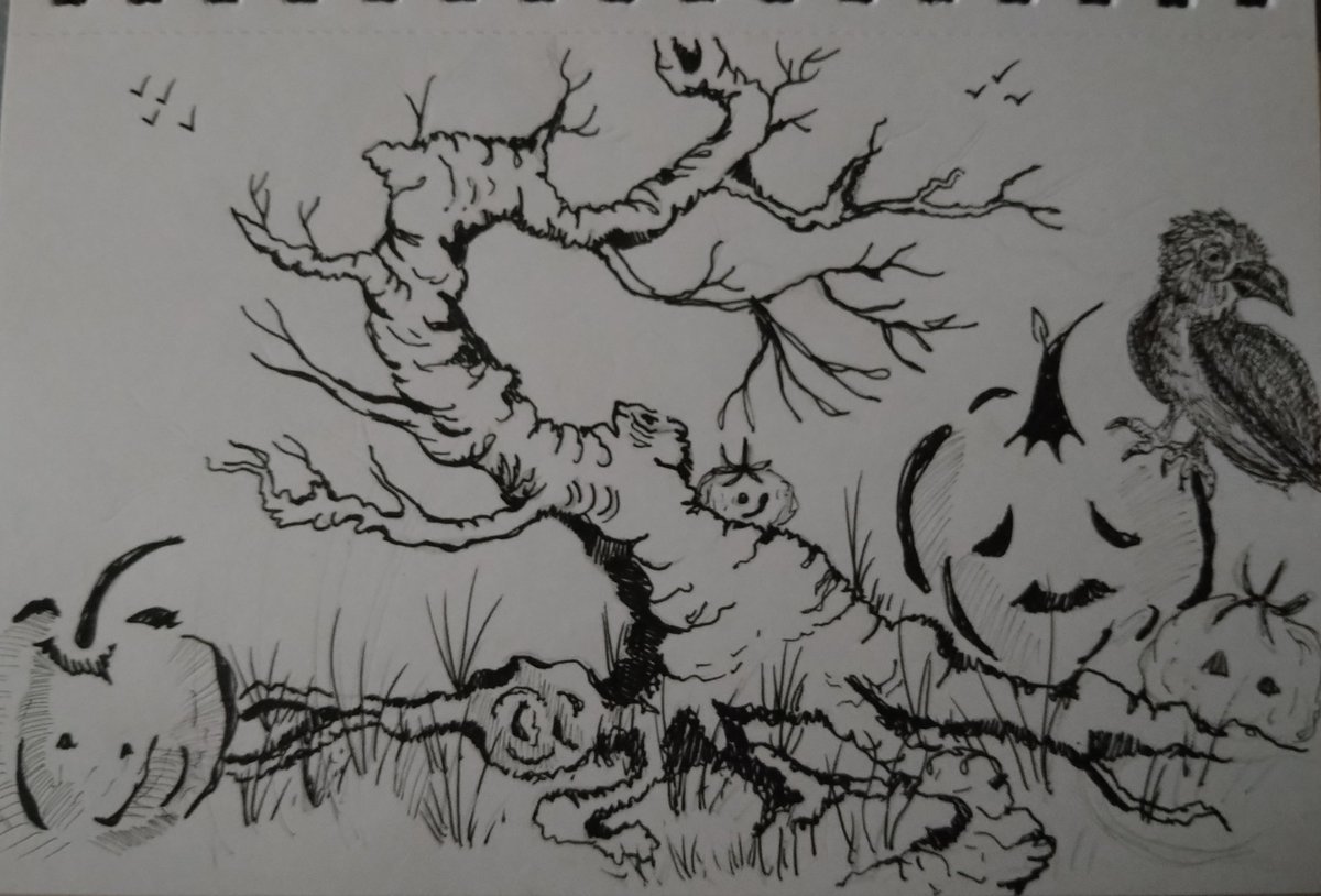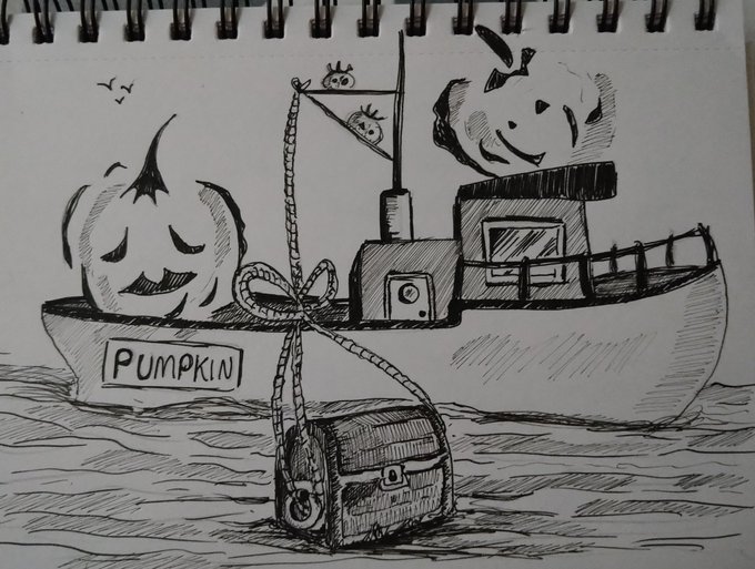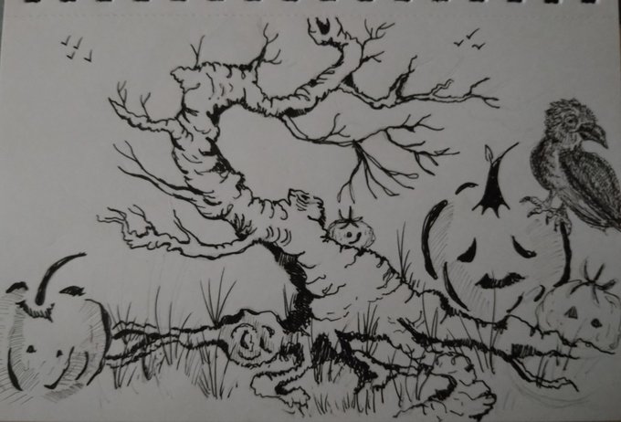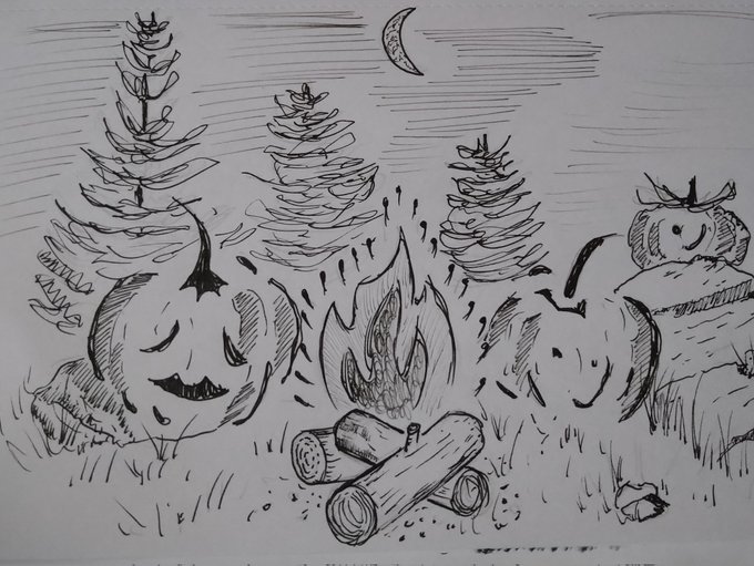 #Inktober @inktober #inktober2021 #inktober2021day27 " The #NaughtyPumpkins are following the map, but it's getting late, time to #Spark up a fire 🔥" 🤔🎃😜
