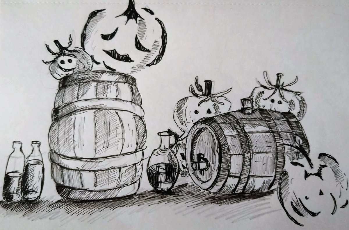 #inktober2021day6 #inktober @inktober "On every #Pumpkin adventure, there is always drink. The #NaughtyPumpkins look in high #spirits" 🥂🍻🎃🎃😜🤗❤️
